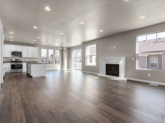 Come see this beautiful brand new Kimball Creek rambler in a great Eagle Mountain master planned community! Overland is the place to be! This stunning home features a large open concept kitchen with quartz counters, white laminate cabinets and stainless steel gas appliances. Includes a finished basement for tons of extra space! The owner's bedroom includes an on suite bathroom with cultured marble surrounds and chrome hardware. Along with an expanded patio, box bay windows and a gas log fireplace this home offers it all & more! Come check it out today!