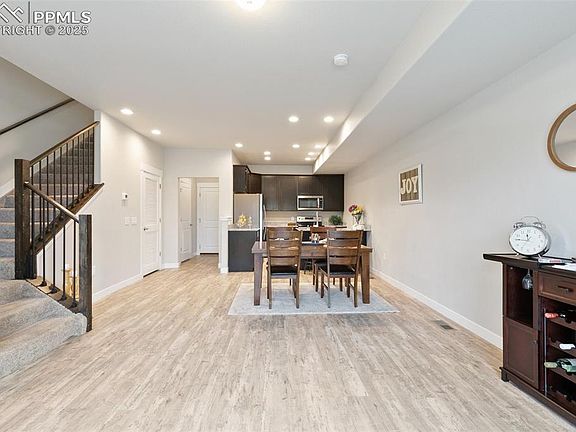 Welcome Home to Lorson Ranch! Step into this beautifully designed, open-concept two-story home located in the heart of scenic Lorson Ranch. Just 15 minutes from both Fort Carson and Peterson Air Force Base, this charming 3-bedroom, 2.5-bathroom home with a spacious 2-car garage is ready for its next chapter. As you enter, you’re greeted by a bright and expansive foyer that flows effortlessly into the living room, dining area, and kitchen—perfect for everyday living and entertaining. A convenient powder room is located on the main floor, while upstairs you’ll find a stunning primary suite, two additional bedrooms, and a dedicated laundry area. Wake up to breathtaking views of Pikes Peak right from the comfort of your primary bedroom. The large unfinished basement offers endless potential for a custom retreat, home gym, or additional living space. Enjoy the outdoors with nearby parks and trails, and appreciate the easy access to shopping, dining, and daily conveniences. Don’t miss your chance to own this beautiful, low-maintenance home in a thriving community.