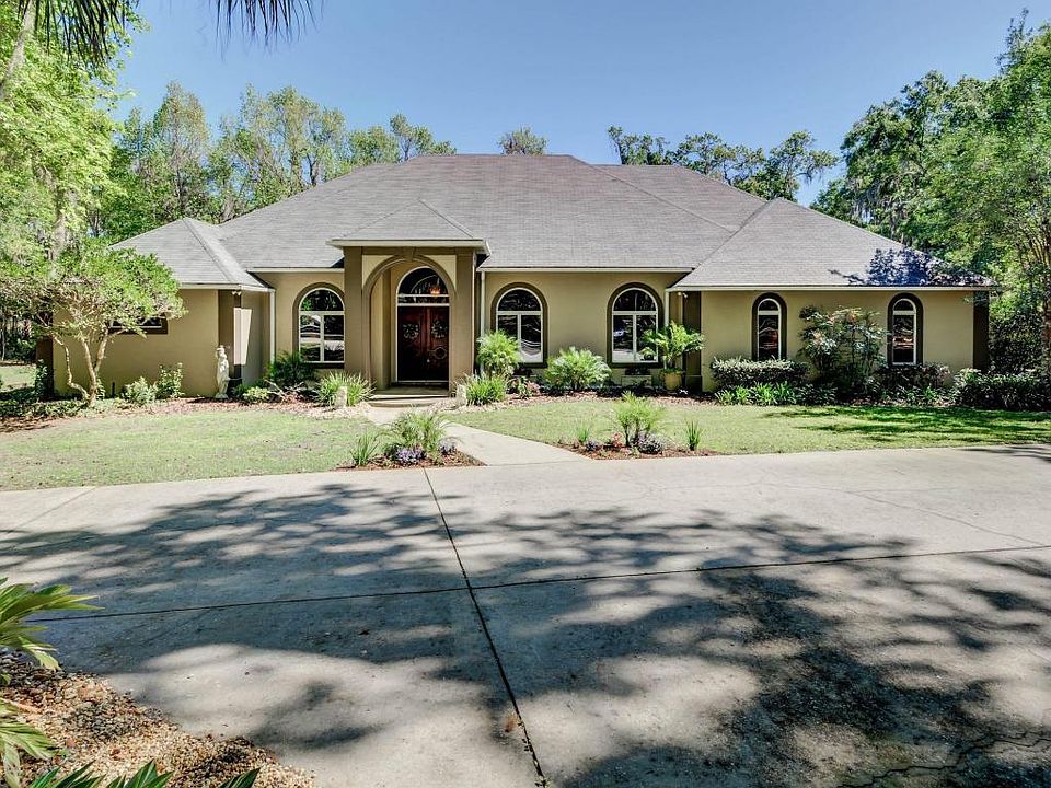 Over three acres of gated privacy in the prominent Summit II community is what sets the stage for this beautiful 4 bedroom 6.5 bath pool home just minutes from town. A wrought-iron gated entrance separates this fenced estate apart from the competition and the rest of the community. Entering the home, the soaring ceilings lead to a living room, updated kitchen and multiple oversized sliding doors leading to one of six entrances to the screened lanai and oversized pool area. The large, open kitchen features granite counter tops, an oversized island with seating capability, recessed lighting, double sub-zero refrigerator, an abundance of newer cabinets and a significant amount of natural lighting. This side-entry split floor plan home features 10 feet tall ceilings, hardwood flooring and crown molding throughout. Family room features tray ceilings, fireplace, French doors and 14 feet tall tray ceilings. The oversized screened pool enclosure features a 10 feet deep 40,000 gallon oversized pool, sauna, stone decking, lanai and a 2 bathroom cabana and bar complete with refrigerator and cabinetry. The 24 X 16 master suite features direct access to the pool area, his and hers walk-in closets, and an enormous tiled master bath with jetted garden tub, floating-built in vanities with individual lighting and marble counters, and a dual-headed step-in shower. Additional features include new interior & exterior paint, Anderson double-paned windows, 6 inch tall custom floor molding, 3 AC units, a study/bonus room and updated fixtures throughout. For more information, or to arrange a viewing of this property, simply call Chuck Shaver at (352) 250-9617.