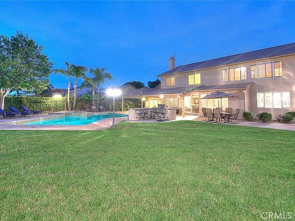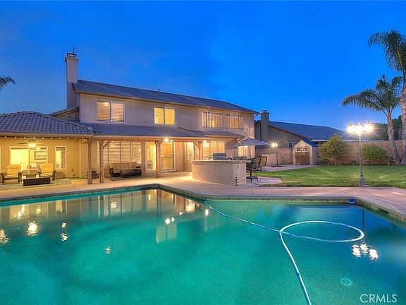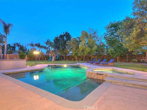 Fabulous Chino "estate" property situated on a sprawling 18,117 square foot lot (per assessor records) with 5 bedrooms & 3 1/2 bathrooms and resort style pool and spa. Located in a highly desirable development that features horse & walking trails, pride of ownership is apparent as you drive the neighborhood. This home enjoys a WONDERFUL floor plan including a spacious downstairs suite with bedroom, a generously sized private living room and on-suite bathroom. The bathroom has a large walk in shower & custom vanity with upgraded counter top. Perfect for in-law quarters or guest quarters. The downstairs suite has direct access to the backyard and covered patio for a quiet cup of morning coffee or afternoon drinks by the pool. The living room and formal dining area are the first rooms you will enter from the front double doors and foyer. A large family room with rock accented fireplace and built in display/storage features opens to the spacious kitchen. The kitchen boasts rich wood cabinetry, an abundance of storage space, granite counter tops, recessed lighting, decorative backsplash and a cheery breakfast nook for informal dining. Upstairs is a lovely primary suite, with views to the tranquil backyard and retreat space. The large on-suite bathroom has a separate soaking tub and walk in shower and a sizeable walk in closet. Secondary upstairs bedrooms are nicely sized and there is a another guest bathroom as well. Excellent extra storage throughout the home. The backyard is park like with an expansive lawn area, play set, private barbecue island, huge covered patio and gorgeous sparkling pool and spa. Backyard trees include avocado, orange, lemon and lime. This property is perfect for entertaining and outside recreation. 4 car garage plus space for RV parking & plentiful driveway parking. This property has so much to offer!!