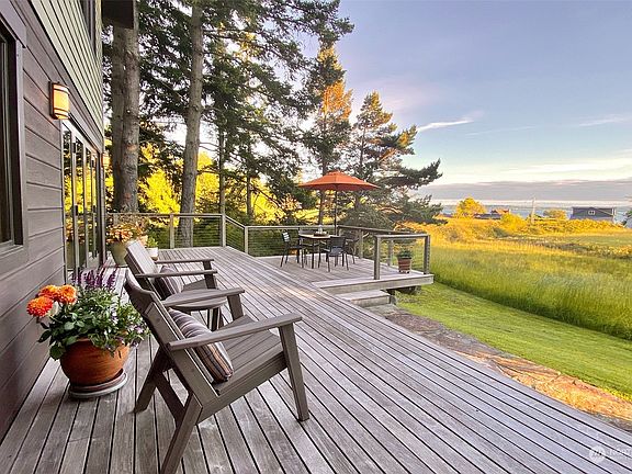 Surrounded by 2.75 ac of Natural Beauty, this Whidbey Island Gem is calling you home with its sunny SW exposure & inspiring meadow, water & mountain views. Experience superb artisanship throughout the home from granite & limestone countertops to fine woodwork. Enjoy abundant wildlife from wrap-around deck, or head back inside to cook up a feast in the gourmet kitchen w/pass through to the dining room & spacious Lvg rm w/ gas fireplace. Head to the bonus room w/huge windows for your home office, or enjoy the views from 2 luxurious en-suites! Outside treasures include a large pond, orchard & 600 sf studio/shop w/ carport & windows that take it all in! Want more? Oversized garage offers potential for expansion. Welcome to your island oasis!