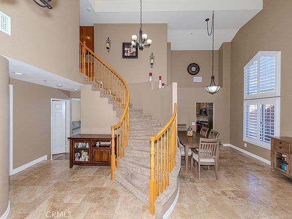 Turnkey and tastefully updated 2-story cul de sac home in a very desirable neighborhood. This home has been extremely well maintained by owners of 30+ years. The Spanish tile roof was redone 3 years ago with dual underlayment and a projected lifespan of 50 years! Featuring 4 upstairs bedrooms and 3 bathrooms, this home boasts cathedral ceilings and natural light upon entering an open concept lower level. The upstairs bathrooms both feature dual vanities and high end upgrades. The primary suite is extensively upgraded with vaulted ceilings, a walk in shower and soaking tub, dual vanity and walk in closet. Significant updates include a full repipe about 5 years ago (eliminating in-slab plumbing), a complete repaint 7 years ago with meticulous maintenance since, an HVAC system replaced within the last decade, and termite service treatment of their own accord over the years. The garage door comes with a backup battery, and the home is equipped with a seldom-installed sub-panel with cam-lock hookups for rapid generator hookup in an outage. This home features a rare 3 car tandem garage with pull-through garage door providing access to the spacious back yard that features a patio, market lights, artificial turf, and established landscaping. This home is turnkey and move in ready for a new owner looking for tasteful, peace of mind upgrades. Great access to both the 210 and 15 freeways, local eats and shopping.