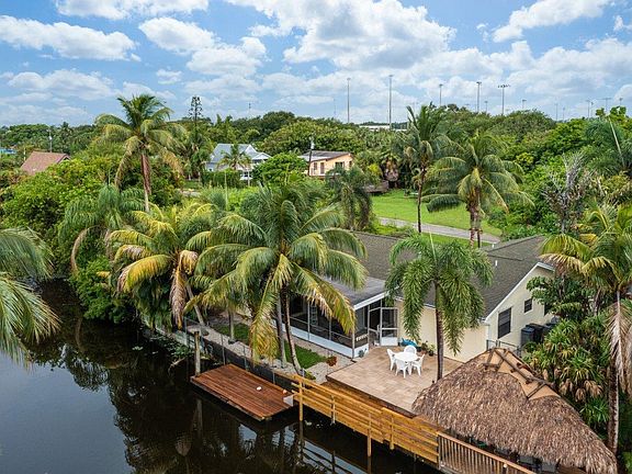 Enjoy the tranquility when you are sitting on your dock and watching the several species of fish and wildlife! Then hop in your boat and you are only 3/4 of a mile from Lake Osborne! The deck and the 16 ft. dock were just redone with 2x8 pressure treated wood. Come inside the patio, and see the open floor plan. The liv rm floor is 18'' tile, and the family room, and eat in kitchen have new water proof laminate. The counter tops have all been re done as well, with the bar area open to the liv room, ideal for entertaining. There is a side entry garage, and storage area on the exterior. This is a great home in a unique location - a dead end street, but close to everything.
