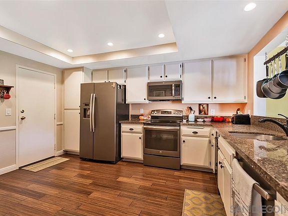 Remodeled Townhouse in Meadowridge La Costa, Warm tones & Bamboo wood floors. Granite counters & Matching GE Profile Stainless slate appliances. Complete an open & comfortable kitchen Downstairs half bath.Spacious bedrooms. Private patio with a gate opens to a greenbelt to step out & walk. Cul-de-sac, w/ addt'l guest parking. tenant pays Electric/gas, water, trash & cable