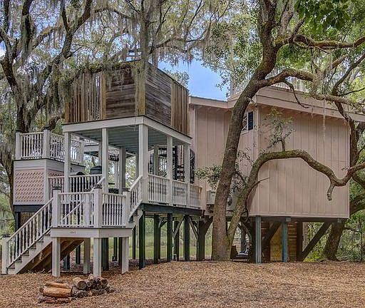 AVAILABLE 11/22/24-12/31/24 Tucked away from the hustle and bustle of the everyday world and overlooking the marsh and tidal creeks of Wadmalaw Island's unspoiled landscape you will discover The Charleston Treehouse. This luxurious hideaway offers a vacation getaway steeped in peaceful privacy where rustic and elegance converge. Part of the destination known as the Plumage Treehouses, and set among Wadmalaw Island's breathtaking, wilderness landscape, here you're surrounded by quiet woods and nature's calm. Inside this delightful treehouse more magic awaits. Each interior detail is curated as an intentional choice, and it may be hard to tear oneself from the coziness of the indoors to take in all of the outdoor splendor waiting to be enjoyed. This cozy, PET-FRIENDLY treehouse is appointed with a KING bed, a furnished kitchenette complete with compact fridge with a small freezer, coffee maker, stovetop, and microwave, a copper soaking tub, bathroom, and a wall of windows that frame the breathtaking views. Enjoy the unique experience of taking a shower outdoors, tucked among the treetops.The spectacular backdrop of this private setting means quiet mornings for sleeping in, peaceful reflection, walks along the trails, and reveling in the feeling of truly being away from it all. You'll find ample work space and high-speed WIFI if should your stay include the need to work remotely. With soaring ceilings, there's a second story loft, the perfect spot to curl up with a book. At this one-of-a-kind hideaway, take in the view from the Treehouse's multi-leveled porches while cooking dinner on the outdoor grill, shower outdoors under the stars, or relax in a bubble bath in one of the oversized soaking tubs on the porch for a clear view of the night sky. There's even a perfectly-appointed boudoir for your pet! Nightfall beckons for sipping a cocktail or roasting s'mores around the fire pit. While a stay at the Charleston Treehouse offers you solitude and privacy, there is no limit to what you can see, do and explore from here. Just a 30 minute drive into historic downtown Charleston, or to shopping at Freshfields Village and the beaches of Kiawah Island. Fully furnished monthly rental - No smoking. $150 Non-refundable Pet Fee/pet (maximum one dog allowed), $500 - Pet Deposit -Refundable upon satisfactory inspection of property after check out. Minimum rental age 25. $50/hour Early Check-in Fee, $25/hour late check out fee.