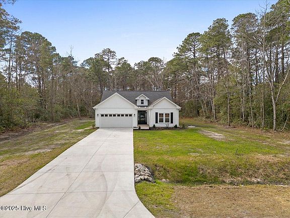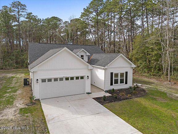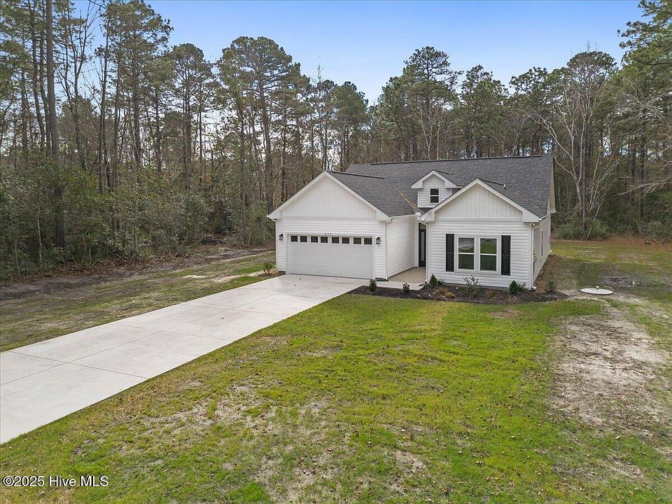 This new construction home offers lots of light and open concept for easy living and entertaining. Take the party outside on the large covered patio. Split floor plan gives privacy to the primary bedroom with walk in closet and primary bath. With almost 1/2 acre lot there is room for a storage building, pool or both. Lots of room for your fur babies to roam. Carolina Shores North offers one of the more affordable POA dues with community pool clubhouse, playground and tennis.