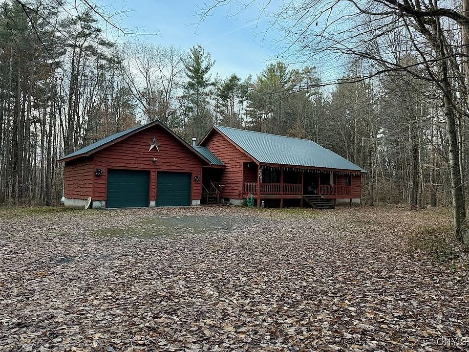 Embrace the charm of peaceful living in this warm and inviting custom-built cabin-style ranch, complete with an attached 2-car garage and a large deck tucked into the trees just moments from the world-famous Salmon River. The Salmon River and Trout Brook is just a short walk out the back door through the Salmon River Forest. Set on 3.36 acres of wooded land bordering state land, this 3-bedroom, 2-bath home offers the perfect blend of rustic character and comfortable everyday living.