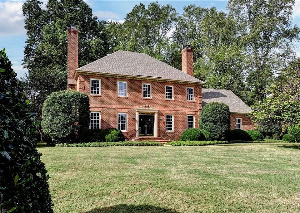 Beautiful all brick Colonial built by custom builder Ron Curtis & located on premier street with part golf views of the 8th tee on the Plantation Course. This home comes with 4 bedrooms, 3 1/2 bathrooms and a spacious bonus room with rear staircase access. The gracious foyer opens to the two-story staircase, living room with wood burning fireplace and to the "Jefferson Library" designed after CW with exquisite dentil molding, built-in bookshelves and has a gas fireplace as the center piece. The kitchen has a large eat-in area and opens to the lovely sun room with views over the backyard & golf course. First floor primary suite with large bathroom and 2 walk-in closets. Upstairs is another primary suite plus 2 additional bedrooms, bathroom and bonus room. Beautiful hardwood floors, 9ft. ceilings on the first floor & complete with a 2 car attached garage. This home is loaded with charm & detail and has so much potential.