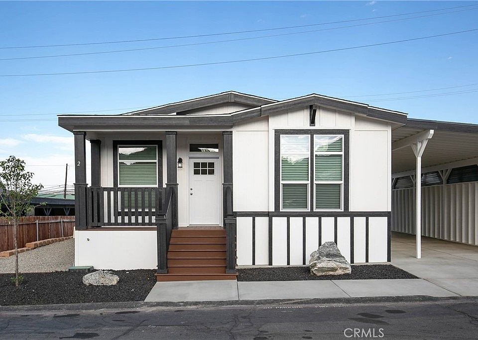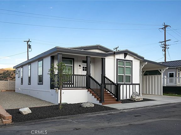 Your Mountain Haven. Step into a world of tranquility and modern comfort with this brand new, never occupied, 2025 Champion Skyline Manufactured Home. Situated in a tranquil mountain setting under wide-open skies, the well-maintained Oakridge Mobile Home Park offers a picturesque backdrop for your new life, with paved roads and neatly kept surroundings. At the heart of the home is a relaxing living room providing a dramatic focal point. A modern, open kitchen with sleek dark cabinetry complements light countertops and stainless-steel appliances await culinary adventures. Pendant lights cast a warming glow over the central island, creating an inviting atmosphere enhanced by the rustic wood design flooring. The bathroom combines practicality and style, featuring a double sink vanity with dark cabinets and modern fixtures. Step into the double-sized, glass-enclosed shower, bathed in natural light from sliding windows above. Rustic wood-design flooring adds a touch of warmth. A spacious laundry room with upgraded cabinets is ready to handle everyday needs. Complete with forced-air heating and air conditioning, the home is constructed to meet or exceed Energy Star compliance, ensuring energy efficiency and sustainability. Lanscaping, upgraded carport/garage and custom shed complete with electricity. Professionally installed within this beautiful community, this residence offers a harmonious blend of modern comfort and serene mountain living. More than just a house; it is a sanctuary waiting to welcome you. Come, experience life within these walls, and create a beautiful future. A one-year warranty is included.