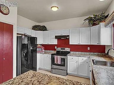 Located 5 minutes from gate 4 this is a unique property located up in the hills of Westmark behind the World Arena west side of I-25. Very nice home with a great open floor plan, located in peaceful neighborhood with no neighbors behind you! just a few blocks from Ft Carson. Fully landscaped front yard with auto sprinkler system in front & back. Features Central Air Conditioning. Updated vinyl windows and slider from Champion Windows, In 2018 seller completed the following: All new interior paint, exterior paint, Most of the blinds were updated, Dryer was new, Stove and refrigerator were new. In 2022 Cabinets and countertops in kitchen were replaced and new carpet and Laminant flooring through out the home as well as a new roof and new AC and heater unit. In 2023 new doors were installed throughout the house.