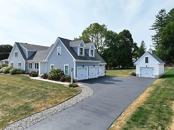 This stunning 4 BR, 2.5 Bath Cape beautifully positioned on an oversized 3/4 acre lot with professionally landscaped grounds welcomes a refined and convenient lifestyle in Shrewsbury's Town Center. Enjoy sun-filled space with abundant storage, hardwood floors throughout, and custom finishes including crown molding, coffered and bead board ceilings. This home features a First Floor Primary bedroom with full bath and custom walk-in closets. Thoughtfully designed kitchen complete with stainless appliances and quartz countertops opens to spacious family room with floor to ceiling stone fireplace, combining warmth of family living with elegant entertaining. Home includes first floor laundry and 4 car garage, perfect for car enthusiasts or woodworking space. Easy access to major routes, restaurants, hospitals, and so much more. Book your private showing today!