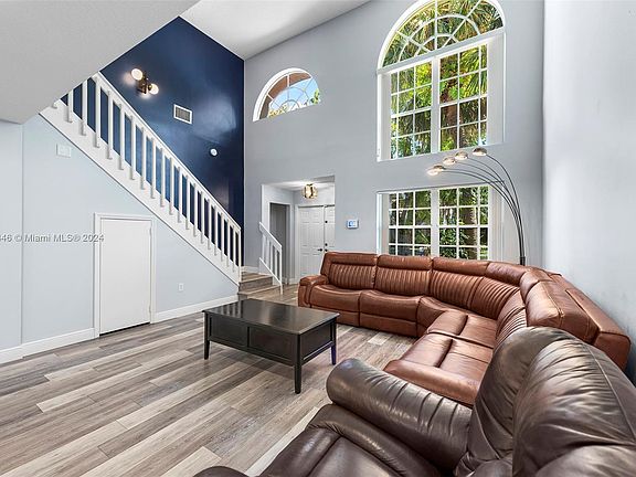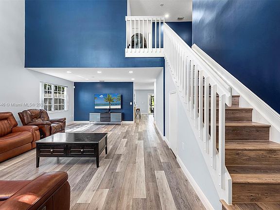 Discover a well-maintained 4-bed, 2.5-bath, 2,334 sq ft lakefront home, showcasing upgrades that reflect true pride of ownership. The spacious 2-story foyer and living room offer sophistication, while the remodeled kitchen features exquisite cabinetry and quartz counter tops, overlooking a manicured backyard and serene lake. Enjoy an added screened patio for outdoor entertaining. The primary bedroom on the main floor offers lake views, double walk-in closets, and an ensuite bath. Upstairs, find three bedrooms and a versatile loft. Equipped with hurricane protection and a 2-year-old AC unit for peace of mind. The fenced backyard includes a fire pit with stunning water views. Close to Sawgrass Mills, dining, shopping, and easy access to Fort Lauderdale and Miami.