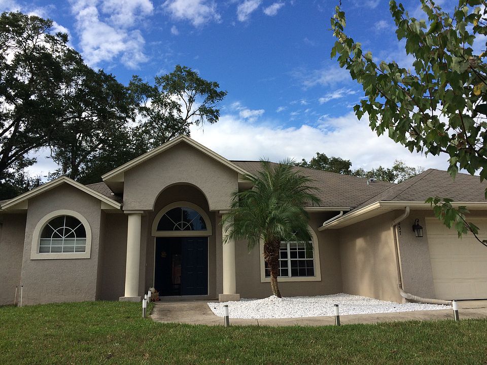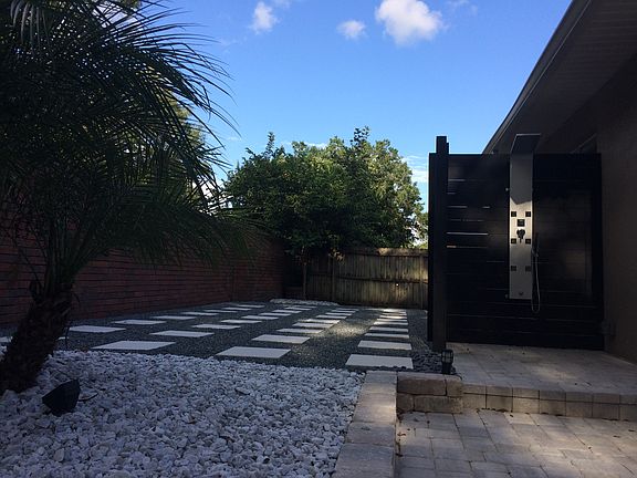 WELCOME HOME! This stunning 4 bedroom 2 bath home which is located in the desirable Country Creek Estates community. When entering the home you are greeted by volume ceilings and an open concept, split floor plan which has been completely updated. To the left you will find the master retreat complete with walk in closet, master bathroom with walk-in shower and separate garden tub and vanity with dual sinks. In the main living space you have a beautiful dining room overlooking the kitchen which is perfect for entertaining family and guests. The impressive chef's kitchen has shaker cabinetry, stone countertops, stainless steel appliances, ceramic farmhouse sink and a large kitchen kitchen island which doubles as a breakfast bar. Through the sliding glass doors you enter the spacious screened in patio with plenty of room for relaxing while enjoying views of the private and modern backyard. Additional features include: luxury vinyl plank flooring, fully fenced yard, updated plumbing (2015), updated backyard with outdoor shower (2016), new roof (2017), new HVAC (2019), a local community pool, clubhouse and much more! Schedule your showing today, this home will not last!