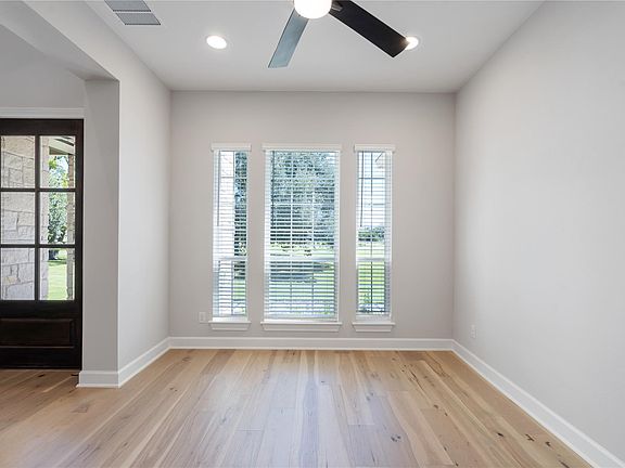 Situated on an oversized 3/4+ acre homesite, this efficient and open design lives larger than the sqft. Hill Country stone and stucco exterior architecture includes soaring ceilings, extensive windows, 1st floor primary bedroom and home office. Main bath includes a walk-in euro shower with custom tile work, glass walls, and walk-in closet. Upstairs includes 4 spacious bedrooms, gameroom and media room. Entertainer’s kitchen wine fridge, cooktop, and microwave. Treed homesite that backs to a ranch for ultimate privacy. Oversized covered rear patio for evening deer watching and morning coffee. Move-in ready upgrade package includes blinds, ceiling fans, refrigerator, landscape/sprinkler package, and more! Esperanza and Terrata Homes – the perfect combination of Hill Country living and value in the heart of Dripping Springs.