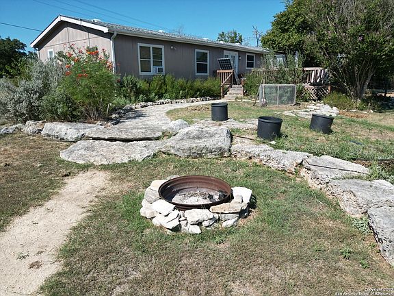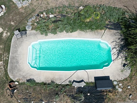 4 Acre Tract, 4 bedroom, 3 Bath, 2128 SqFt, 2 Living rooms, Dining room, Breakfast nook, Island Kitchen Open floor plan, Laminate wood flooring in living areas, hallway and 3 bedrooms, Saltillo tile in entryway, second and third bathroom also in the Laundry room. All electric appliances and heat source. There is a 7kW grid-tied solar system in place, the panels need to be reinstalled after the roof was replaced. The Covered front porch, Large back deck for enjoying the outdoors and star gazing. The In-ground pool for those hot days or warm evening swims. Property is fenced and cross fenced with a 35' x 35' Fenced livestock pen, The 10' x 10' Chicken coop features two weatherproof/predator proof chicken coops and a completely enclosed 35' x 45' run. The OverEZ large coop houses up to 15 chickens, has a heat bulb for winter, and a programmable automatic door. There is a smaller secondary coop within the same enclosure. Also a Greenhouse frame, there is a 20' x 50' high fenced garden with irrigation system, The property has Outbuildings, a Workshop and a Shed with a covered storage area. There is a Playhouse with slide, with storage. Property has access to a wet-weather creek, Lots of wildlife: deer, rabbits, foxes, birds. This property has Mature Oak trees. No restrictions. There is no MANDATORY HOA, there is a river park association that you can belong to, gives access to private Medina River Park, and river, Some home upgrades; lighting in the (kitchen, dining room, hallway, bedroom 2) Dimmable light switches in kitchen & hallway Motion sensor light in laundry room Other upgrades. Vanity area Jack & Jill bathroom for bedrooms 2 and 3 , vinyl flooring in kitchen, RO system in the kitchen, faucets in master bath, Saltillo tile in entryway and second bathroom third bathroom. Work/Maintenance: Roof replaced Feb 2021, Septic pumped June 2020, New septic tank riser and lids installed July 2020, New pool pump motor installed August 2020. All new well pressure tank, switch and upgraded PVC piping installed July 2020. New A/C evaporator coils and outside condenser unit installed August 2019.