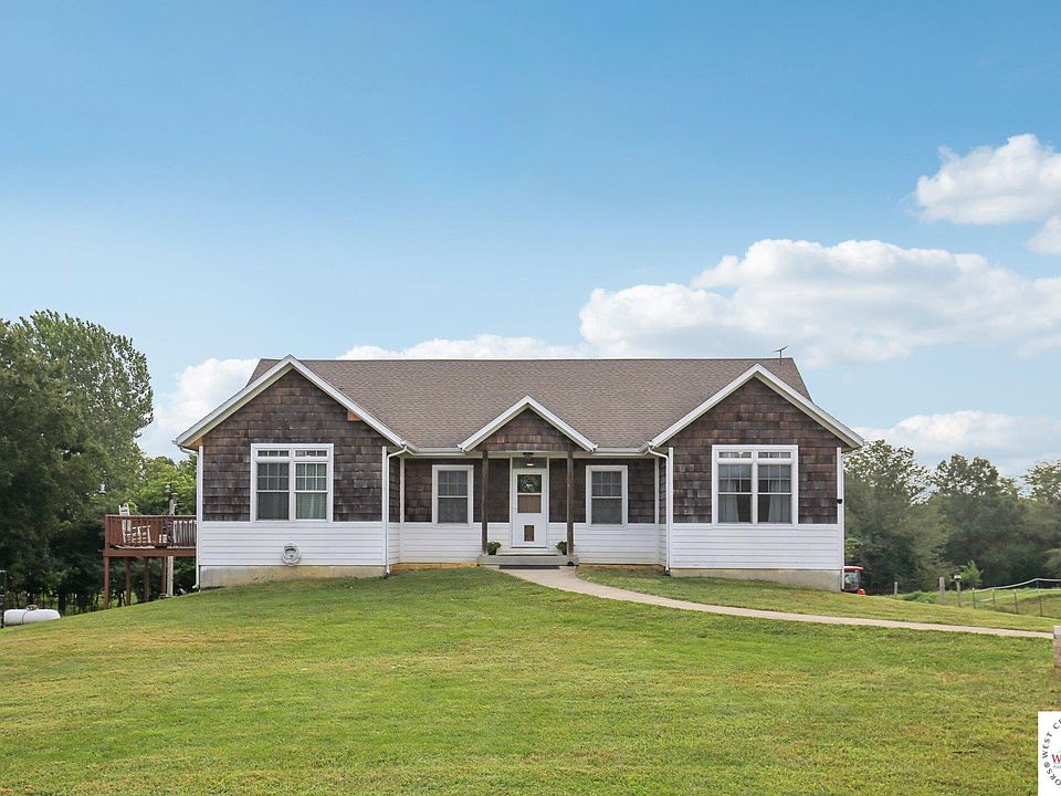 Welcome to this inviting 5 bedroom, 3-bath ranch-style home nestled on a peaceful 4-acre lot just minutes from Warrensburg. Featuring an open-concept layout, this home offers a spacious living area filled with natural light, perfect for both relaxing and entertaining. The kitchen boasts ample cabinet space, a convenient island, and easy flow to the dining area. The primary suite offers a private retreat with a walk-in closet and en-suite bath, while the additional bedrooms are generously sized for family, guests, or a home office. Enjoy the serenity of the outdoors from your large back deck overlooking wide-open views, mature trees, and space for a garden or animals. The walk out basement has a conforming bedroom and one more room that can be utilized if desired. There is also a garage door so a garage area can be finished out if needed. There is just so much opportunity here. Comfortably located between Warrensburg, Holden this home provides easy access to all amenities.New Roof Coming Soon! Quick! Take a look and make this house Your New Home! Buyers are encouraged to verify all measurements and claims. Detached shed is negotiable.