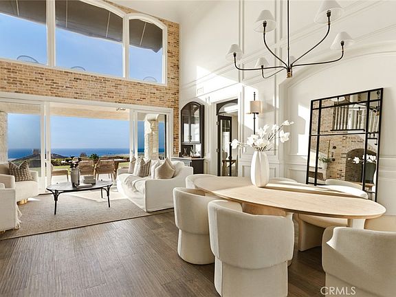 From the magnificent Pacific Ocean and Catalina Island to city lights, sunsets, and Dana Points monolithic Headlands, unobstructed 180Aº panoramic views enrich almost every room of this stunning custom estate in San Clemente. Boasting one of the best homesites in Marbleheads exclusive, guard-gated enclave of The Summit at Highland Lights, the remodeled residence redefines luxury living in approximately 4,200 square feet. A coved double height ceiling makes an outstanding first impression in the grand entry, living & dining area, which opens to ocean views and hosts a sweeping semi-circular staircase, dry bar, reclaimed Chicago brick, interior French doors leading to casual living spaces, and custom leaded-glass entry doors. Ocean views continue to impress in the family room, where built-in cabinetry flanks an elegant fireplace. The adjacent kitchen will please even the most demanding chefs with soapstone countertops, white Shaker cabinetry w/ glass uppers, a farmhouse sink, large island, and an ocean-view breakfast nook w/ bay window. Top-of-the-line stainless steel appliances from Viking, Sub-Zero and Thermador include a drawer microwave, built-in refrigerator and six-burner range, and a French door opens the kitchen to a secret side garden. An oversized laundry and mud room are featured, & an attached garage accommodates parking for three. Enjoy the comfort of 4-bedrooms including a main-level ensuite, 5-baths, an ocean-view office w/ extensive built-ins, and another first-floor office w/ Venetian plaster walls and skylights. Two staircases lead to the second floor, which overlooks the living area below and hosts two bedrooms w/a shared bath, a bonus room with coffered ceiling or optional 5th bedroom, and an opulent primary suite w/ sitting area, fireplace walk-in closet, deck access and a private ocean-view balcony. The bath shines with an elegant freestanding tub, separate shower & two vanities w/ waterfall-edge countertops. An artisans eye for excellence in craftsmanship is evident through the inclusion of custom crown and base molding, wainscoting, judges paneling, bay windows, high-end tilework, top-tier finishes and fixtures, black raised-panel interior doors, & woodgrain porcelain tile & hardwood flooring throughout. Grounds extend nearly 14,265 square feet and reveal a long 13-car driveway, stone entry patio, manicured landscaping, and a backyard w/ loggia & pool-sized lawn. Top schools, beaches, shopping, dining & recreation are moments away.