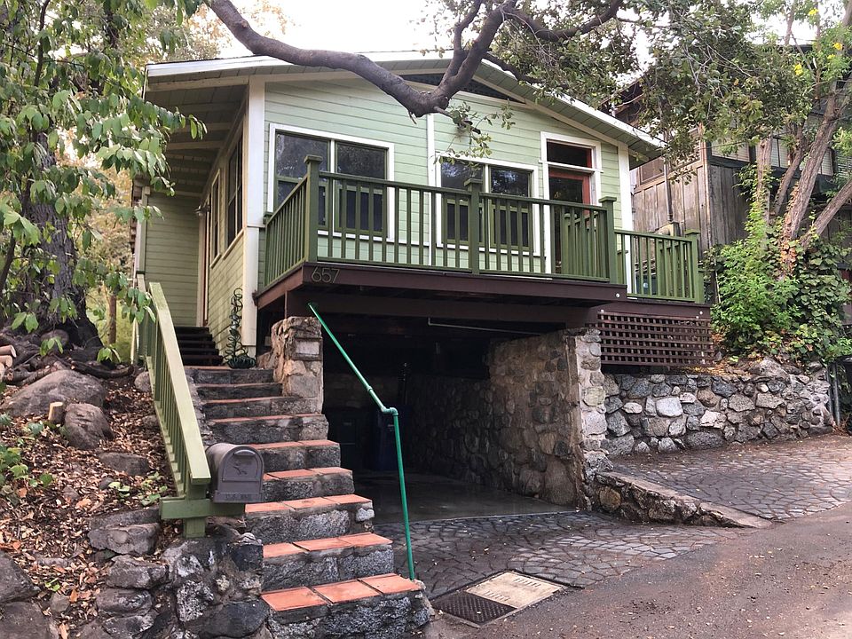 Located in the highly sought after Sierra Madre Canyon, this very well maintained 3 bedroom, 1 bathroom single family house is nestled in the heart of the canyon community. Located steps away from Mary's Market, this house offers an updated kitchen that includes a stainless steel refrigerator and gas range, a large living room with wood burning fireplace and new heating and cooling units in each room to offer maximum comfort. A large attached studio area is located at the rear of the house that can be used for a studio, a possible home office or can be used for extra storage space. The property includes a large secluded back yard as well as a deck at the front of the house which overlooks the surrounding area. The home also offers an indoor laundry area that includes a washer and dryer and a carport along with space for parking an additional car.