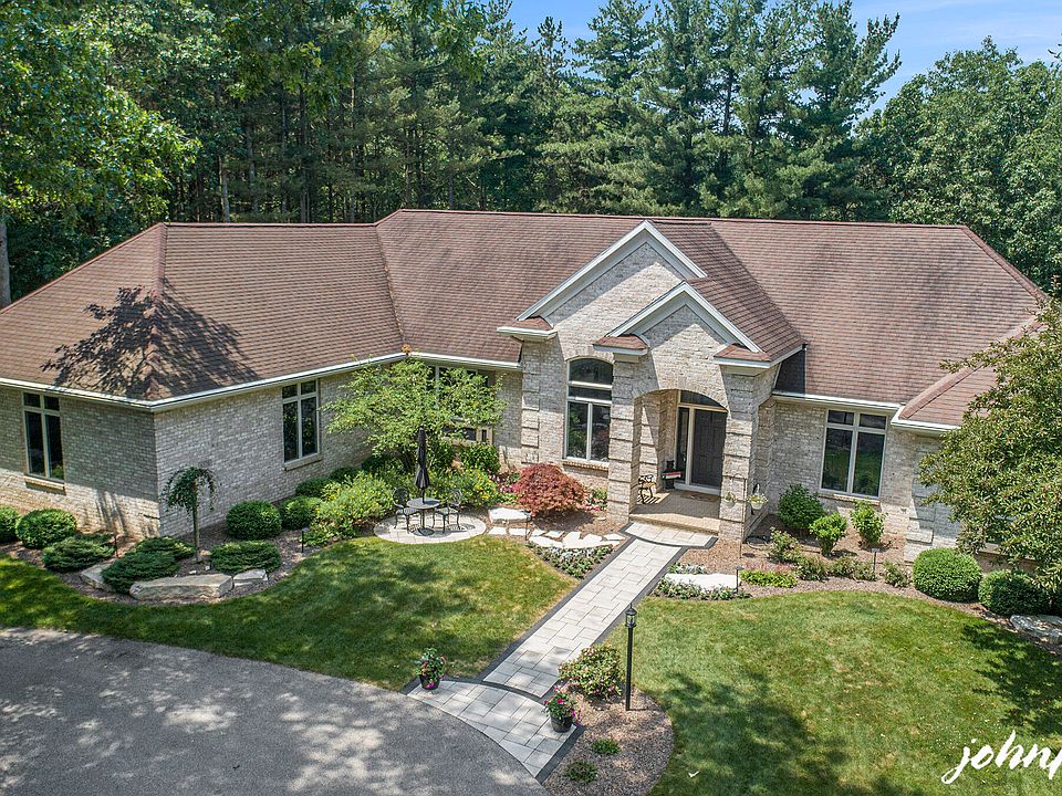 This custom built one owner home on 1.56 acres is ideally located close to the Village of Ada on a private drive. Seller has spent over $600k in updates & improvements in the last 6 years including a remodeled Kitchen. Main floor office. Large Primary suite. 2nd bedroom & full bath. 2 Story great room with fireplace. Lower level includes ensuite with 2 additional bedrooms & full bath, kitchen with wine bar, family room, & media room. New outdoor living spaces. SOLD BEFORE BROADCAST