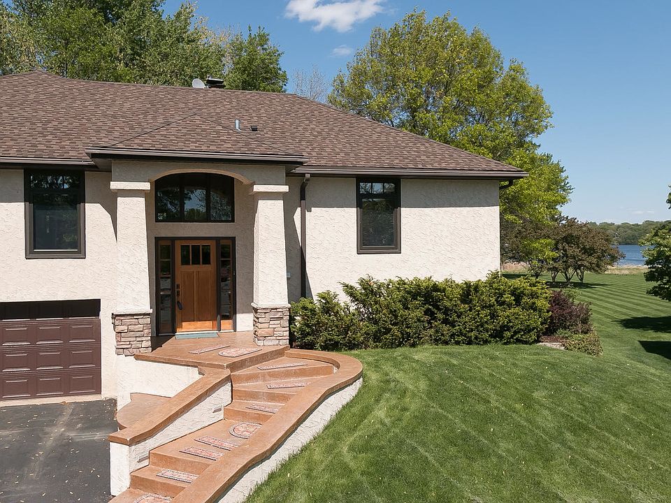 Relocation makes this home available for YOU! Feel up North all year round! Would you like to live on the Lake? Deeded access with your own private floating dock! Fish, jet ski, boat all summer long. Skate and fish in the winter. Beauty on this cul de sac is a plus. This home is CLEAN! Vaulted main floor ceilings with windows from all rooms to view beauty! Main floor office is open and welcoming. Sitting area or for the musician in the family and also enjoy the open living area. Spacious gourmet kitchen with ample storage! Tandem garage and additional parking on the side of the garage. Welcoming grand entrance! Stained and stamped concrete entry walkway! So much to enjoy!!