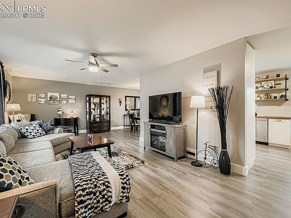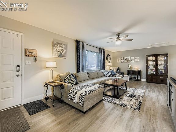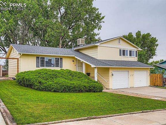 Move-in ready tri-level home with three bedrooms and two bathrooms, featuring a functional layout and multiple living areas. The main level includes a living room, dining area, and spacious kitchen, creating an open and inviting space. The lower level has a separate family room that walks out to a large, landscaped backyard that’s ideal for outdoor enjoyment and gatherings, with a peek mountain view to enjoy. The master suite offers a private full bathroom and a walk-in closet. Flooring includes carpet on the lower level and luxury vinyl throughout the upper levels, and all bedrooms are equipped with ceiling fans. Updates completed in 2018 include a new roof, new gutters, and new carpet. Fresh interior and exterior paint were completed in 2021. Additional features include an evaporative cooler with three-way vent to the upper bedrooms, and a separate laundry room. Located in a well-established neighborhood, the home is near Big Johnson Reservoir, parks, and trails, with convenient access to Ft. Carson, Peterson Space Force Base, and Schriever Space Force Base. This property combines multiple indoor living areas with an elegant backyard, offering versatile space and move-in ready condition.