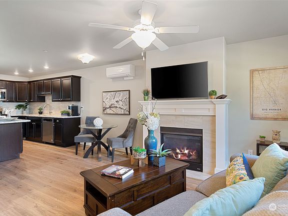 Welcome home to the Hunt Highlands Gated Community, located centrally, just minutes to downtown Gig Harbor! This amazing condo offers single level living at its finest, and a location that can't be beat. Beautiful eat-in kitchen with gorgeous cabinets, slab granite countertops, designer tile backsplash, laminate wood flooring, S.S. appliances & newer carpeting & blinds. Gas fireplace for those cool fall evenings and a mini split for A/C on those warm summer afternoons. Primary has walk-in-closet & deluxe bath. Top all this off w/ a tankless hot water tank for quick hot water & a rare 2-car garage & you have perfect carefree living. All this & close to: downtown, uptown, Cushman Trail, restaurants & shopping. Easy access to HWY 16 too!