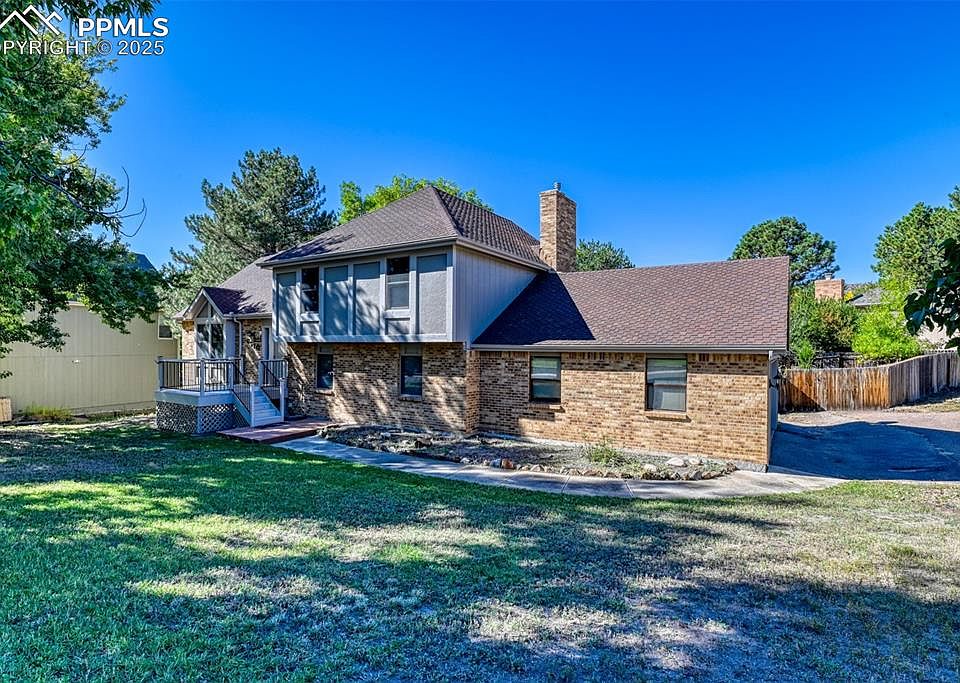 Beautiful corner-lot home in sought-after Comstock Village, Rockrimmon. Welcome to this incredible home on prime corner lot in the highly desirable Comstock Village neighborhood of Rockrimmon. Featuring four bedrooms plus a finished basement (used as a fifth bedroom) and four bathrooms, this spacious tri-level home with a finished walk-out basement offers comfort, functionality, and charm. A welcoming front deck leads you inside where you'll find a bright kitchen with stainless steel appliances and a convenient island. The formal livingroom boasts vaulted ceilings and an overlooking loft, creating an open and airy feel. Upstairs, the primary suite features a private en suite bath and a walk-out deck with serene views of the beautiful backyard. Two additional bedrooms and a full bath complete the upper level. The family room offers a cozy grand fireplace, heated tile floors, and direct access to the deck and backyard- perfect for entertaining or relaxing. The adjacent fourth bedroom also features heated flooring and an attached half bath. The oversized two car garage is heated, includes a workbench, and has a brand new insulated door. The backyard is designed for both play and productivity with a swingset area, raised garden bed and a practical "rockyard" covered storage area for tools and equipment. Recent updates include a brand new central AC and furnace, new exterior paint, and a new water heater (installed 8/2023). Additional features include a central vacuum system and a radon mitigation system.This home truly embodies "location, location, location" - nested in a quiet, established neighborhood with easy access to parks, schools and trails.