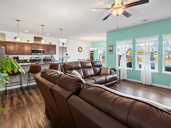 Don’t miss the opportunity to make this beautiful, open-concept 3-bedroom ranch your new home! With breathtaking pond views, a covered patio, 2 full baths, and a 2-car garage, this like-new residence is immaculate—showcasing thoughtful upgrades and designer touches throughout. Step inside to a spacious great room filled with natural light and serene water views. The gourmet kitchen features stainless-steel appliances, an electric range, an expansive peninsula island, and granite countertops—perfect for both everyday living and effortless entertaining. Enjoy 9’ ceilings, luxury vinyl plank flooring throughout the main living areas, fresh paint, and Aristokraft cabinetry in the kitchen and both full baths. The primary suite includes a double vanity, walk-in shower, and a generous walk-in closet, offering the ideal combination of comfort and style. A full-size laundry room adds convenience and functionality to the home’s well-designed layout. Exterior features include a brick elevation, a covered patio overlooking the water, a fully fenced backyard, fresh landscaping accents, and irrigation in both the front and back yards—providing easy maintenance and beautiful outdoor living. A high-quality builder’s warranty transfers to the new homeowner, offering added peace of mind. Located in the desirable Barrington Lakes community, this home is close to top-rated TSC schools, local amenities, and offers quick access to I-65. Move-in ready and waiting for you—come see where your next chapter begins. Love Where You Live in Barrington Lakes!