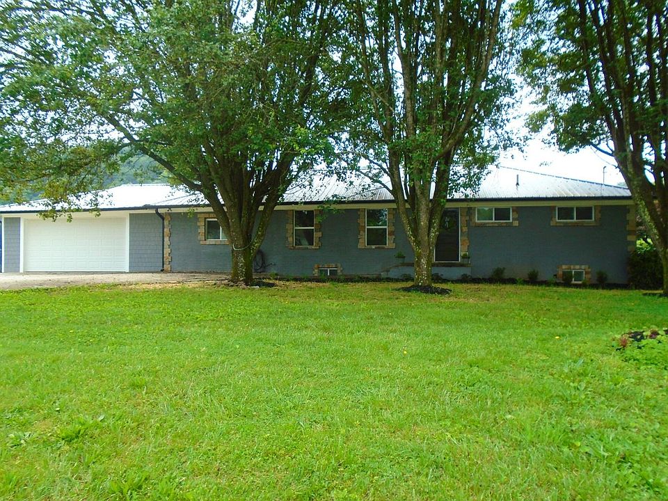 Immaculate is the word that comes to mind when you see this newly renovated brick and frame basement rancher. Country location on a 3+ acre rolling, wooded lot but just minutes from shopping, schools and interstate access. Completely remodeled from top to bottom, including a new metal roof, two car, heated garage, new electrical and plumbing, duct work, insulation, water heater, energy efficient lighting, vinyl windows and flooring. Custom metallic resin flooring in the kitchen, sun room, basement rec room and downstairs bedrooms. Large plank mahogany hardwood in the living room, den and master bedroom. Two stone, wood burning fireplaces in the den and basement rec room. All new interior paint and fixtures. Three tile bathrooms with walk-in showers and all new fixtures. Two storage sheds.