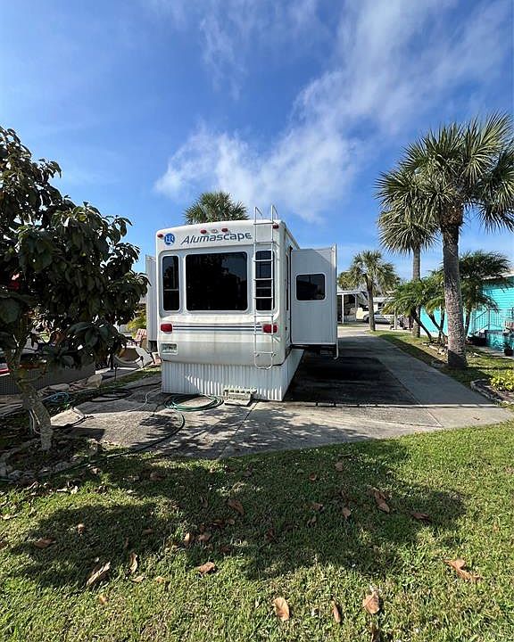~Ancient Oaks~ 55+ Community. 35' Holiday Rambler RV & deeded Lot. Brand new roof(2024). New full size refrigerator. New ceiling fan & Microwave in 2024. 1 Bed 1 Bath. Sofa sleeper in Living room. 4 slides. Washer & Dryer hookups.