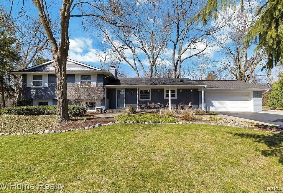 This updated tri-level is nestled in Bloomfield Township offering both convenience & comfort. A short distance from Telegraph Rd. shopping & a short drive to exciting Birmingham, this wonderful family home is within the Bloomfield Hills School District. It perfectly blends suburban tranquility with easy access to local amenities. The home features 3 generously sized bedrooms & two full bathrooms on the upper level with a convenient Half Bath. The main hallway Full Bathroom has heated floors for comfort. The Primary Bedroom includes a Primary Bathroom not often found in this generation of house. The heart of the home is the white Kitchen, with granite countertops, SS appliances, and a Breakfast Nook with convenient coffee bar, perfect for casual meals or morning coffee. You’ll love not one, but two fireplaces, one in the elegant living room (gas) & another in the family room (natural), they provide both warmth and ambiance. The bright, open Living Room flows into the formal Dining Room, which is enhanced by a sliding door that opens to a newer stamped concrete patio. This outdoor space is perfect for al fresco dining, summer BBQs, or enjoying the serene private wooded backyard. The lower level features daylight/egress windows that flood the open Family Room with natural light, creating a spacious, bright space for relaxation or family gatherings. Additionally, the lower level includes a fully functional sauna, offering the perfect spot for rejuvenating after a long day, & there’s a vinyl tiled Laundry/Utility Room. For added convenience, the home includes an attached 2 car garage, providing ample storage & direct access to the home. The house is heated with gas hot water baseboard heating & includes central air conditioning. Recent updates include beautiful hardwood flooring on the main level, newer roof, updated gutters, newer carpet in the lower level, and a water backup for the sump pump.