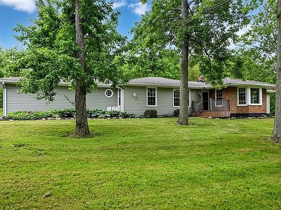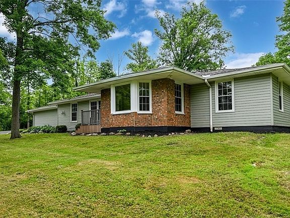 Country paradise! Beautifully updated 3-bedroom, 2-full bath ranch home situated on 3.5+ acres of wooded land in scenic Medina County. (2025) updates include tear-off roof, asphalt upper driveway, stainless steel appliances, new carpeting, luxury vinyl plank flooring, fresh interior paint throughout (walls & ceilings), and a crawlspace encapsulated with a dehumidifier (included). The previous owner completely gutted and fully renovated the home in 2006, featuring a stunning cherry cabinet kitchen with built-ins, granite countertops, peninsula, and pass-through. Remodeled tile bathrooms also include granite counters. The home boasts solid oak 6-panel doors, Andersen patio doors, new siding, updated electric, plumbing, and windows (2006). Spacious living room with bay window and stone surround fireplace. Rear walls of glass overlook the patio and firepit, offering serene woodland views and seasonal blooms visible from the kitchen, family room, and sunroom. Additional updates include a (2020) hot water tank and (2016) boiler. Ceiling fans in multiple rooms. All you need to do is move in and enjoy. Just 5 minutes from downtown Medina, shopping, schools, and hospitals. Extremely private setting.