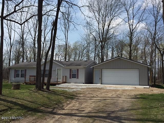 Beautifully wooded acreage on the corner of Mt Zion/Union Rd. The interior of the home has been updated with new bathroom fixtures, faucets, carpeting and appliances which will stay with the home. The master suite has a large double closet and walk-in shower. The other 2 bedrooms are good sized and ready to move in with tastefully done carpeting. There is a dining area and a snack bar in the kitchen. The living room features a vaulted ceiling and looks out to a beautiful country scene. Laundry area has access to a mud room and the master bath. The front deck also provides a great outdoor living space. New 4+ garage/ (24'x36')/pole building. Abandoned home and 2 acres will be split from the current 5 acre parcel subject to twp. approval. Buyer will have first option to purchase split.