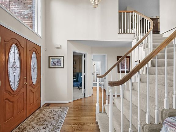 NW Troy centrally located in desirable Crescent Ridge Subdivision, Open Floorplan with Dual Staircases to 2nd floor. Beveled glass entry doors open to two story foyer featuring hardwood flooring and radius staircase. Awesome updated kitchen premium cabinets, granite counters and hardwood flooring open to two story family room with hardwood flooring and an abundance of windows for natural light. Volume ceiling living room opens to dining room. Glass entry door to private study featuring oak accented wall with built in shelves. Expansive primary suite with cathedral ceiling, dual walk-in closets. Updated primary bath dual sinks and jacuzzi tub. Additional bedrooms generous and all with walk-in closets. Full basement ready for your finishing touch. Anderson windows, composite deck. Updates include kitchen, primary bath, roof 2016, furnace 2024. Location, location close to shopping, recreation and entertainment. Walk to fighters Park with Playgrounds and Pickleball. Excludes Curtains in Living and Dining Room.