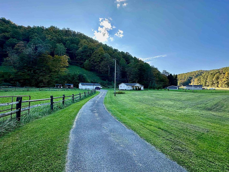 Single level living on over 2 acres with a beautiful babbling stream in the backyard. From the front and side yards the view is of peaceful farmland and mountain views. The home features large open concept kitchen and gathering room, hardwood floors, 2 Plus detached garage, workshop, storage building, kennel and chicken coop. Make this your residence or vacation getaway. Parsons (8 +/- miles) Elkins (18 +/- miles)