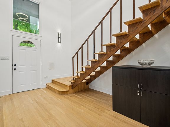 Wow! That is the reaction when entering this uniquely designed, contemporary custom built home in the Wildwood/Edgebrook neighborhood. This is NOT your typical Chicago home. Soaring angled ceilings with sky-lights, oversized windows, lovely light hardwood floors accented with dark inlay details and a surprising outdoor courtyard. The foyer is striking with its dramatic open staircase that leads your eyes upward to a mezzanine balcony. The LR is cathedral-like with symmetrical columns framing a 2-story wall of glass with views of the Caldwell Woods. There is a free standing brick wood burning fireplace that anchors the room and separates the living space from the foyer. The striking balcony breaks this open space with its classic horizontal lines. From the formal DR you can access the impressive kitchen and inviting family room. This Chefs Kitchen has warm cherry cabinets with leaded glass fronts and granite countertops. There is a large island with a convenient prep sink and seating. There is a Gaggenau built-in cook-top and oven, a paneled refrigerator, trash compactor and built-in desk area. A few steps down to the family room with a 2nd wood-burning fireplace and views of the fabulous outdoor courtyard. The courtyard is a delightful tranquil space, located within the walls of this sophisticated home. From the courtyard you have access to an Amazing 20 x 40 open aired rooftop deck. Down the hallway from the family room is access to the garage and into a separate and private living area with sleek white kitchenette, a large bedroom and updated en suite bath. There are 2 separate and private bedrooms on the 2nd level. The primary bedroom is a serene retreat with its elegant dressing room and updated ensuite bath. There is a 2nd bedroom with its own en suite bath. There is a 4th bedroom downstairs with easy access to its own 4th full bath, just up the stairs on the main floor. Recent updates include: All the HW floors have been refinished in a light stain, the entire house has been freshly painted within the past few years, the primary bedroom and in-law en suite baths have both been updated with custom built-in closets, new kitchenette in the in-law suite, new light fixtures, new pavers in courtyard, new A/C unit. Located in the lovely Wildwood/Edgebrook neighborhood, with easy access to Caldwell Woods, the charming town of Edgebrook with the Metra, shops and restaurants, 90/94, downtown and O'Hare. Schedule your showing today!