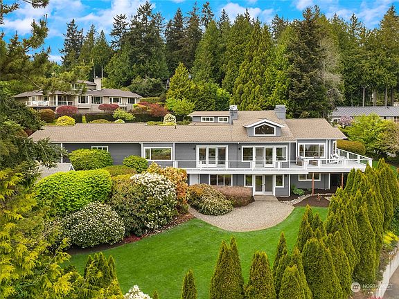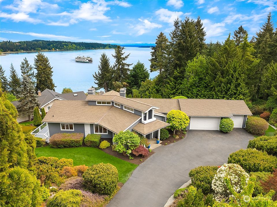 Simply a work of art! Dramatic home designed with thoughtful attention to detail by Seattle Architect J. Brenneis, and masterfully built for those passionate about quality. Be mesmerized by the spectacular Puget Sound/Rich Passage views and enchanted with the symphony of color from established gardens and grounds. With a floor plan created for artwork, entertaining, and main-floor living, you’ll love the soaring ceilings and clerestory windows. Open kitchen/family room and ample living room with French doors to expansive deck. Enjoy private, sweeping views from the main floor primary suite and luxurious bath. Lower level includes two additional bedrooms plus media/office, great storage and more. Automatic generator, attached 3-car garage.