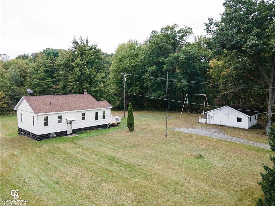 Nestled on just over 2 acres of peaceful land, 6575 Rynn Rd. offers a serene retreat in Clyde, MI. This charming 2-bedroom, 1-bath home features a detached garage/workshop, perfect for projects or extra storage. With a newer roof, windows, and a recently installed house generator (2022), this home is both cozy and ready for the seasons ahead. Enjoy fresh paint throughout, providing a clean and inviting feel. The property backs up to state land, offering added privacy, and has access to the Avoca Wadhams Trail right through the woods, ideal for outdoor enthusiasts. A perfect place to create your own peaceful retreat.