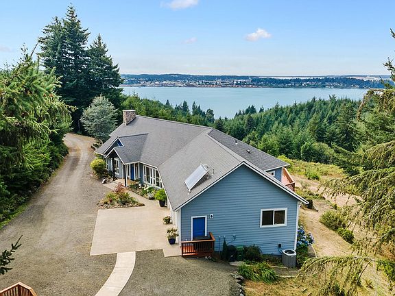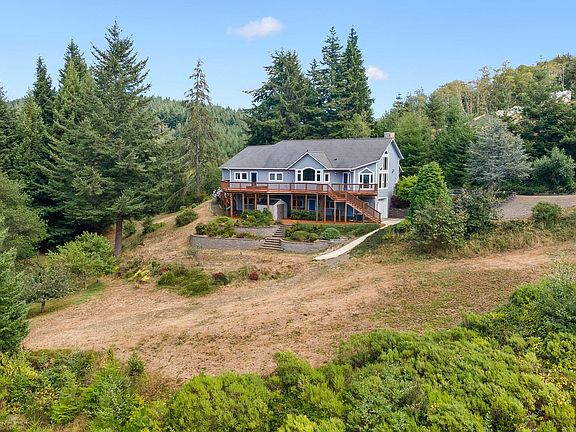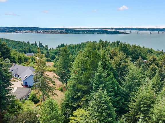 Custom Contemporary Home with Stunning Bridge, Bay, City and Ocean Views on Over an Acre in North Bend!Perched above the bay with gorgeous panoramic views, this custom contemporary home was crafted with thoughtful detail and designed to be a true forever home. Set on over an acre of usable land, the property features private trails, raised garden beds, and open spaces perfect for entertaining, gardening, or simply enjoying the coastal lifestyle.The main level offers a spacious primary suite, soaring ceilings, and a gourmet kitchen with granite island. The formal dining room frames stunning bridge and bay views, while the expansive deck provides the perfect setting for gatherings or quiet sunsets. Extras include indoor solarium, propane fireplace, backup generator, 500 gallon propane tank and solar hot water heater. Conveniently attached is a double garage on the main floor, complemented by an extra-deep second garage on the lower level.Each bedroom enjoys the privacy of its own full en suite bathroom, with an additional guest half bath off the kitchen. Indulge in luxury amenities including a sauna, outdoor shower, and heated lap pool. Outside, an orchard, gardens, and trails invite you to connect with nature without leaving home.A rare offering in North Bend—don’t miss the chance to call this one-of-a-kind bay-view retreat your own!