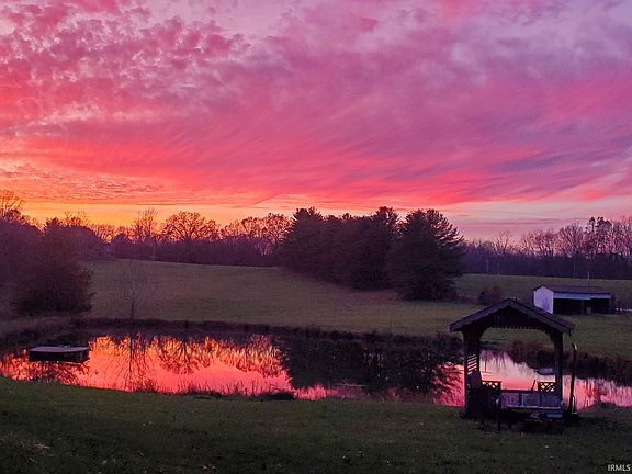 ACREAGE. Enjoy the sunset off the front porch overlooking a stocked pond on scenic 12 acres that is only 6 miles from either NSA Crane gate. This 3 bedroom 2 bath home with metal roof also includes small shed, hay barn, above ground pool and gazebo. Look no further for the perfect garage/shop, as this property has an Amish built 30x40 pole barn on a concrete pad that is insulated, heated and cooled. This parcel of land has huge possibilities, no zoning in Greene County. Approximately 25 miles from the I69/IN37 exit South of Bloomington.