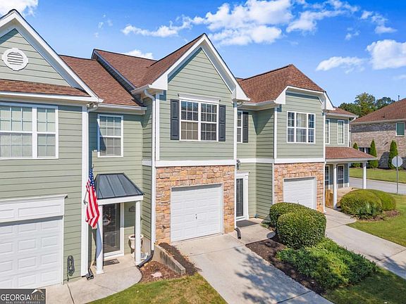 Are you looking for the lake life without the lake price? This Tide Water Cove townhome may be just what you are looking for! You'll be walking distance away from lake access, Hideaway Bay Marina, Fish Tales Restaurant, park, playground, and Downtown Flowery Branch with all the great restaurants, farmer's market and outdoor events! Just minutes away from do I-985, and more dining and shopping. This home features three bedrooms, 2.5 baths, engineered hardwood flooring downstairs, with carpet upstairs, all of which is very clean and well maintained. The larger master suite features a vaulted ceiling and unique master bath plan, with separate shower and soaking tub. The kitchen features beautiful, stained cabinets, gas oven/cooktop and has a more separated feel with the pass-through opening to the living room. You can keep warm on these cool days with a nice fire in the living room, setting the perfect atmosphere for the season.