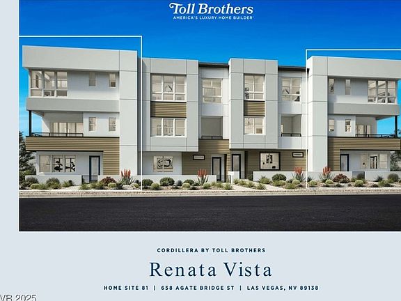 CORDILLERA by TOLL BROTHERS, New Construction Move-In August 2025. (Renata - Lot 81) Modern design meets flexibility in this 2,364 sq ft, 4 bed, 3.5 bath townhome in vibrant Redpoint Square, Summerlin. Still time to personalize flooring, counters, backsplash & bath tile. The open-concept kitchen w/ KitchenAid appliances provides connectivity to the main living area w prime access to the covered patio—perfect for entertaining. Primary suite includes dual vanities & a large walk-in shower. Enjoy sweeping views from the 4th-floor rooftop terrace w/ gas stub & wet bar. Spacious 2-car garage offers great storage. Additional features include first floor bedroom w full bath, agreeable gray interior paint selection and upgraded cabinets. Steps from guest parking & EV chargers. Low-maintenance living w/ access to private community pool. Investor-friendly opportunity!
