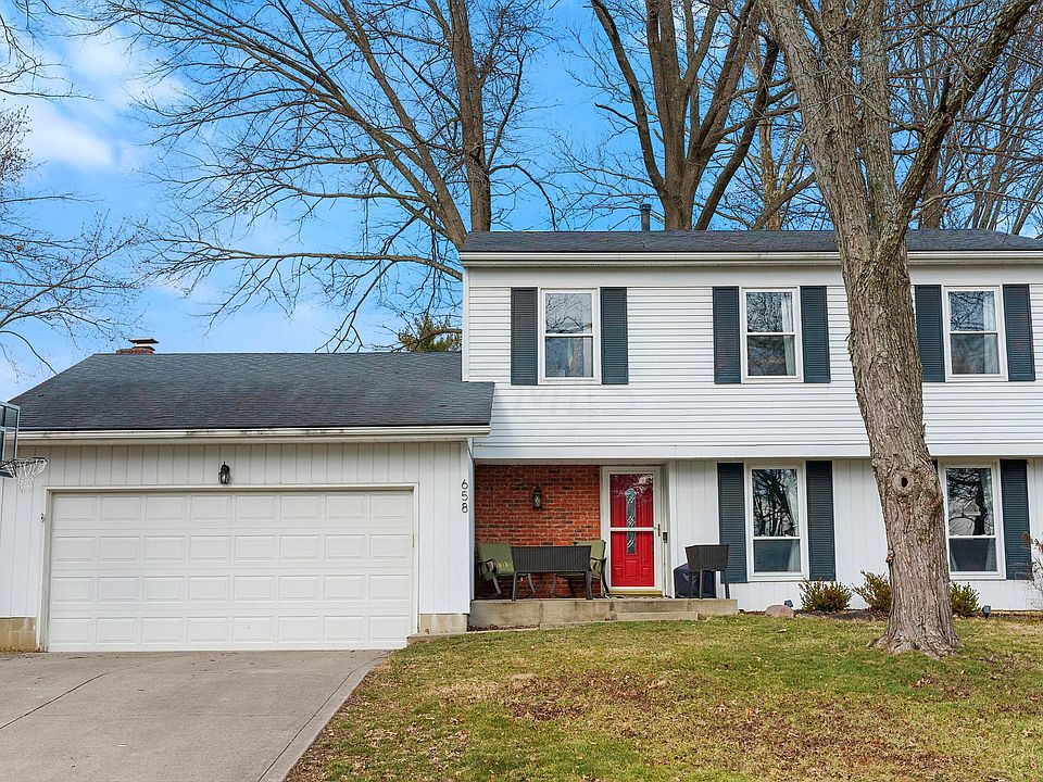 Great floor plan in this spacious 4 bedroom, 2.5 bath 2-story on a quiet cul-de-sac in Gahanna. The layout is perfect for entertaining friends and family with a living room that opens to the dining room and an additional family room on the first floor. Upstairs includes a primary suite and three additional bedrooms with a second full bath. A partially finished basement with can lighting and an Owens Corning wall system adds extra living space. The large fenced backyard with a Trex deck provides a perfect space for hosting guests. Updates include a new furnace and garage door in 2023 and A/C in 2015. This is a must-see!