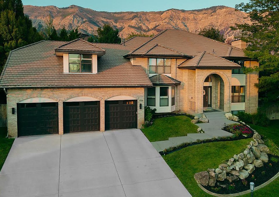 **Huge Price Improvement**Stunning Modern North Ogden Home with Versatile Living Options. Discover this remarkable 5-bedroom, 5-bathroom home, perfectly situated to offer breathtaking mountain and valley views. This residence features a modern, spacious interior with a curved set of beautiful staircases and a chef's kitchen with custom concrete countertops and 6-burner stove with griddle and double-oven ideal for culinary enthusiasts. You'll find it easy to spread out among the 5 generously sized bedrooms with walk-in closets and led lighting. Curl up and enjoy your favorite movies in the theater space with in-wall wiring for surround sound and digital projection. In the cooler months built-in secondary overhead lighting options provide a warm ambiance as you cozy up by any of the four fireplaces found throughout the home. Additionally, you can enjoy a large gym space, wall mirrors, and an abundance of natural light to maintain a healthy and active lifestyle. Another standout feature is the basement which highlights a second kitchen and can function as an apartment, offering flexible rental potential for short or long-term stays. Retreat to the primary bedroom suite, which includes a generous backlit walk-in closet and a well-appointed en-suite bathroom with an oversized soaking tub, walk-in shower and private deck. The property boasts multiple outdoor spaces, including 3 patios and 2 decks, perfect for enjoying the secluded and spacious backyard. Included in this desirable neighborhood are several community green spaces and playgrounds including a tennis court and pavilion that can be utilized by any Lakeview Heights HOA member. This beautifully renovated home combines comfort and functionality in a tranquil setting on a low traffic street. Don't miss the opportunity to make it yours!