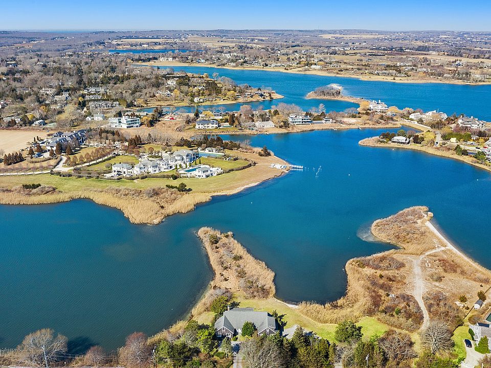 Boater's Dream with 3 private beaches. 2.4 acres of rolling lawns, trails and a private dock on Mecox Bay, just a stone's throw from Flying Point beach.