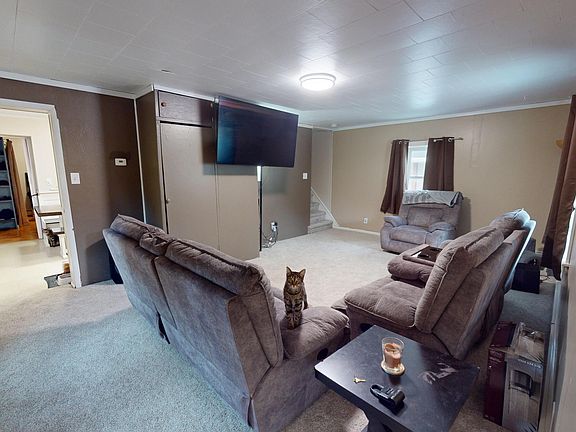 Welcome home! This home has been beautifully updated and is ready for you to move right in! Spacious living room with lots of natural light. The eat in kitchen has plenty of cabinet and counter space for lots of home cooked meals! Bonus room on the back of the house has been converted into a large master bedroom. Enjoy the convenience of first floor laundry! Upstairs there are three additional bedrooms and a full bath. Many updates have been completed to this home, including a new front sidewalk, parge and painted foundation, rear patio added with retaining wall, updated switches and receptacles, new carpet, added gutters and downspouts and a newly remodeled bathroom! You arent going to want to pass up on this beautiful home!