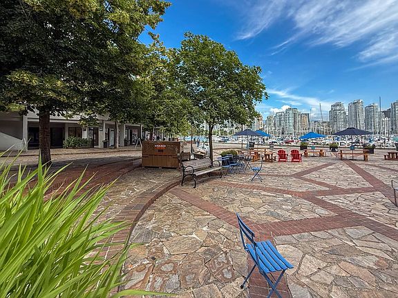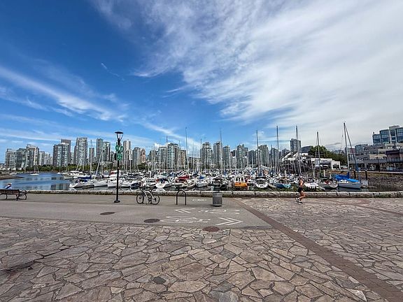 FURNISHED waterfront townhouse w/ 2 bdrms, 2 baths, and 1,268 sq.ft. of stylish living across 3 lvls in the heart of False Creek South. Steps to the Seawall, marina, and Granville Island. Main lvl features open living/dining areas w/ floor-to-ceiling windows showcasing False Creek, skyline & mountain views. Chef's kitchen offers custom oak cabinetry, high-end s/s appls & Italian marble finishes, plus a full bath. Upper lvl has primary bdrm w/ ample closets & ensuite. Top lvl includes 2nd bdrm w/ queen bed & access to a 600 sq.ft. rooftop deck w/ panoramic harbour & city views. AVAILABLE JANUARY 5TH TO APRIL 5TH, 2026 Rental rate includes internet, utilities (capped at $200 a month), one clean a month and 1 secured underground parking stall.