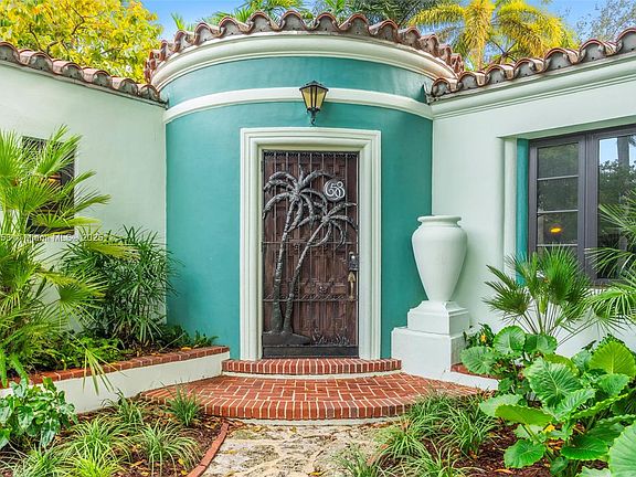 Tropical Deco Residence in Belle Meade designed by renowned architect Victor Nellenbogen, celebrated for his Mediterranean Revival & Art Deco masterpieces. Set on a rarely available & elevated 11,800 SF double lot at the end of a quiet street, this residence showcases meticulous craftsmanship & thoughtful updates. Inside find dramatic living & dining rooms, a soaring cathedral ceiling, ziggurat-style arches, double-sided gas fireplace, & bedrooms all with ensuites. Outdoors, enjoy tropical privacy with new landscaping, a majestic black olive tree, saltwater pool, outdoor shower, & custom Ipe wood decking. Featuring a newly strapped roof, high-grade impact windows & doors, PVC plumbing to the street, & climate-controlled garage. One of Miami's most coveted gated communities!