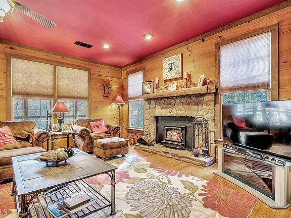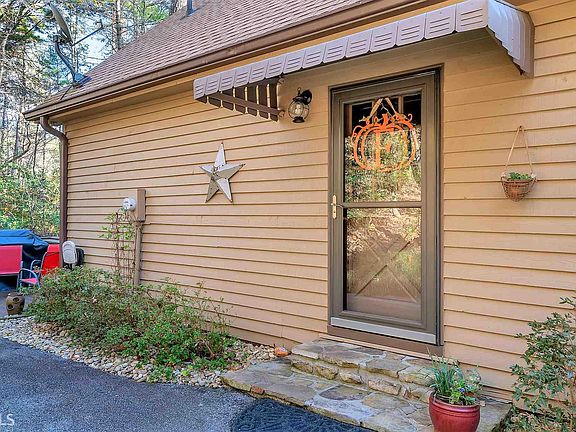 5BD, 3BA Chattahoochee River Home with river deck and boat launch located in the gated Chattahoochee Glen community. Updated and wonderfully cozy with stone fireplace, hardwoods, rustic trim and shiplap rough-sawn pine paneling throughout. Kitchen features stainless appliances, solid surface tops and stamped tin accents. You'll love the screened porch with swing overlooking the river. Terrace level has large media room, 2 beds and a bath, kitchenette, and easy walk-out to covered veranda. Spacious and private back yard is a perfect play space for kids, gardening, or admiring starry nights around the firepit. Including the loft, this home sleeps 12 comfortably! Invite the whole family and bring the kayaks! Conveniently located between Clarkesville and Helen.