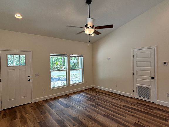 Rent special: August rent is free! BRAND NEW CONSTRUCTION 2024, attention to detail 3 Bedroom / 2 Bathroom gem on half an acre! Designated one of "The 10 Best Small Towns in Florida" by Travel + Leisure Magazine (February 2023), Micanopy has kept its old town feel where neighbors wave to each other, the pace is slow, and local businesses sweeten the Town's charm. Enjoy walking the streets lined with old live oak and magnolia trees. "The town that time forgot", Florida's oldest inland town is like stepping back in time. Known for its antique shops, Blue Highway Pizza, Pearl's BBQ, and Mosswood Farm Store & Bakehouse. Micanopy is also home to both Paynes Prairie State Park and Price's Scrub State Park where you can regularly see wild horses, bison, whooping cranes, and alligators (of course). If you are looking for NEW home with modern conveniences while living in "the town that time forgot" within a short 15 minute drive to Gainesville, then this is the home for you! This home boasts a one of a kind stained glass piece above the front door, an open floorplan with a vaulted ceiling, lots of windows for great natural light, a screened in back porch and an open front porch, parking with electric vehicle charging, energy efficient design, 9' ceilings and vaulted living room, solid wood kitchen cabinets with granite countertops and a large island with seating. Brand new refrigerator, electric range, microwave, hood vent, dishwasher, disposal, and washer & dryer in its separate laundry room with storage closet. The master bedroom is separated from the other bedrooms and boasts a tray ceiling, walk in closet, double vanity, and custom tiled shower. Move in requirements include $49 background and credit check, pets considered on individual basis $40/month, First month's rent and $2000 security deposit due upon signing lease. Tenants are responsible for utilities and lawn maintenance. Not difficult to make wheelchair accessible. Move in starting August 7th, 2025. August, 2025 rent is included! Reach out for the virtual tour and to schedule an in person tour!